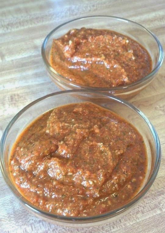 Top & bottom insides of sandwich smothered in my red pepper pesto